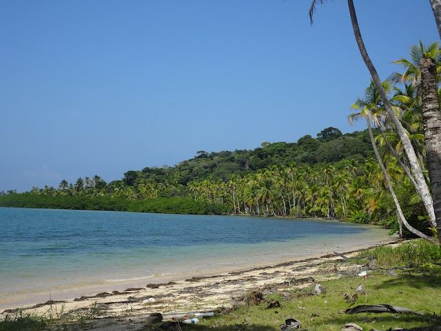 Oh sorpresa fuimos a caminar y darle la vuelta a la isla 30 min fueron más que suficientes. Luego me baño en una playa con el agua azul cristalina, una señora me dice que allí un cocodrilo ataco a una señora que se estaba bañando, pierna y cara, la llevaron de urgencias a Panamá y luego a Francia para cirugías. lo cual no da muchas ganas de bañarse después de eso. Los locales llaman al cocodrilo Roberto y dicen que uno debe solo gritarle "Roberto!!!" y él se va... quien quiere probar?